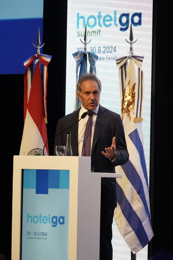 En su paso por la muestra, Scioli afirmó que “el mundo demanda cada vez más el turismo vinculado a la naturaleza” y destacó los atractivos de la biodiversidad presentes en los parques nacionales de Argentina. En sintonía con esto, se refirió a la hotelería sustentable, sobre la que dijo: “No es un compromiso más. Es un eje central en nuestra agenda de trabajo para contrarrestar el impacto climático, promover energías renovables, un programa de educación ambiental e integrarlo a un programa de sustentabilidad con una responsabilidad social y económica a la cual apelamos en todo momento”.